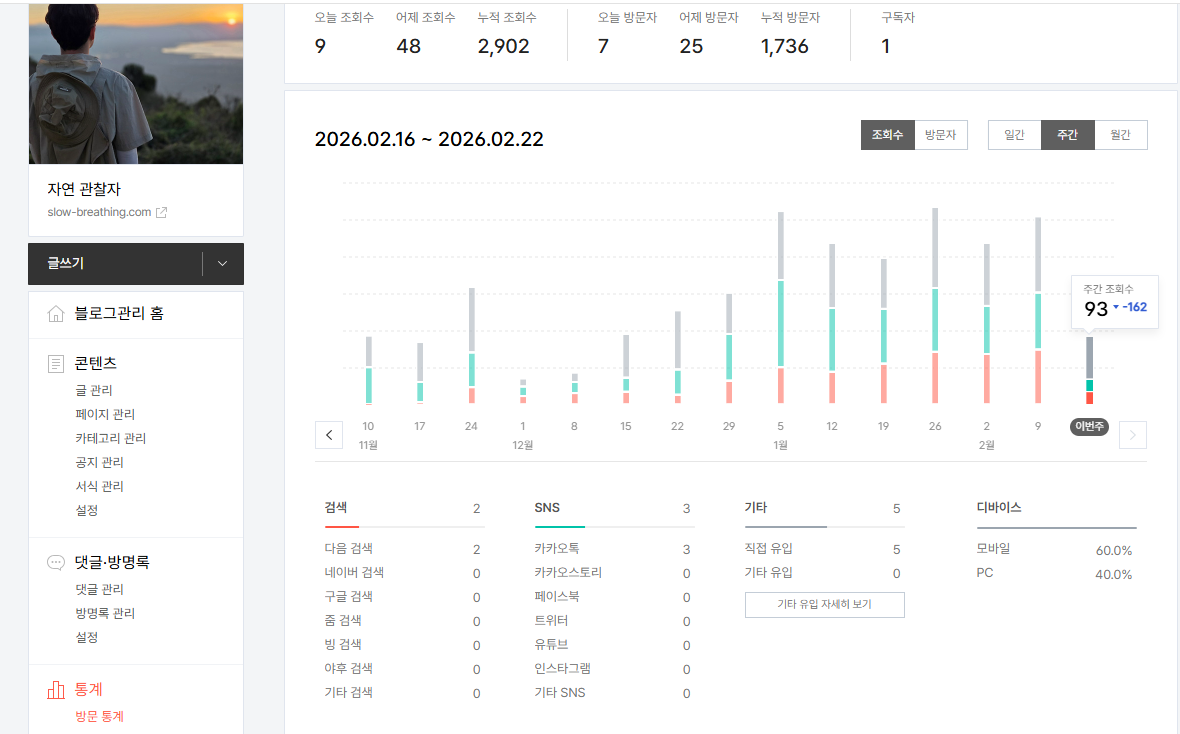 저는 25년 10월 말부터 티스토리에 글을 쓰기 시작했고, 지금까지 대략 4개월 정도 꾸준히 블로그를 운영해왔어요.