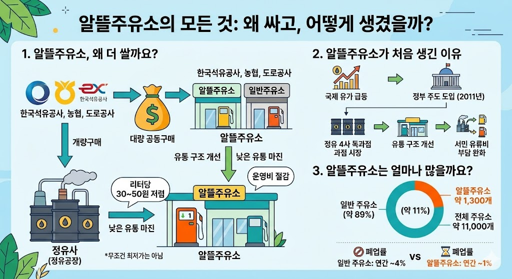결론만 말하면, 알뜰주유소는 “평균적으로 싸도록 설계된 구조”이지,