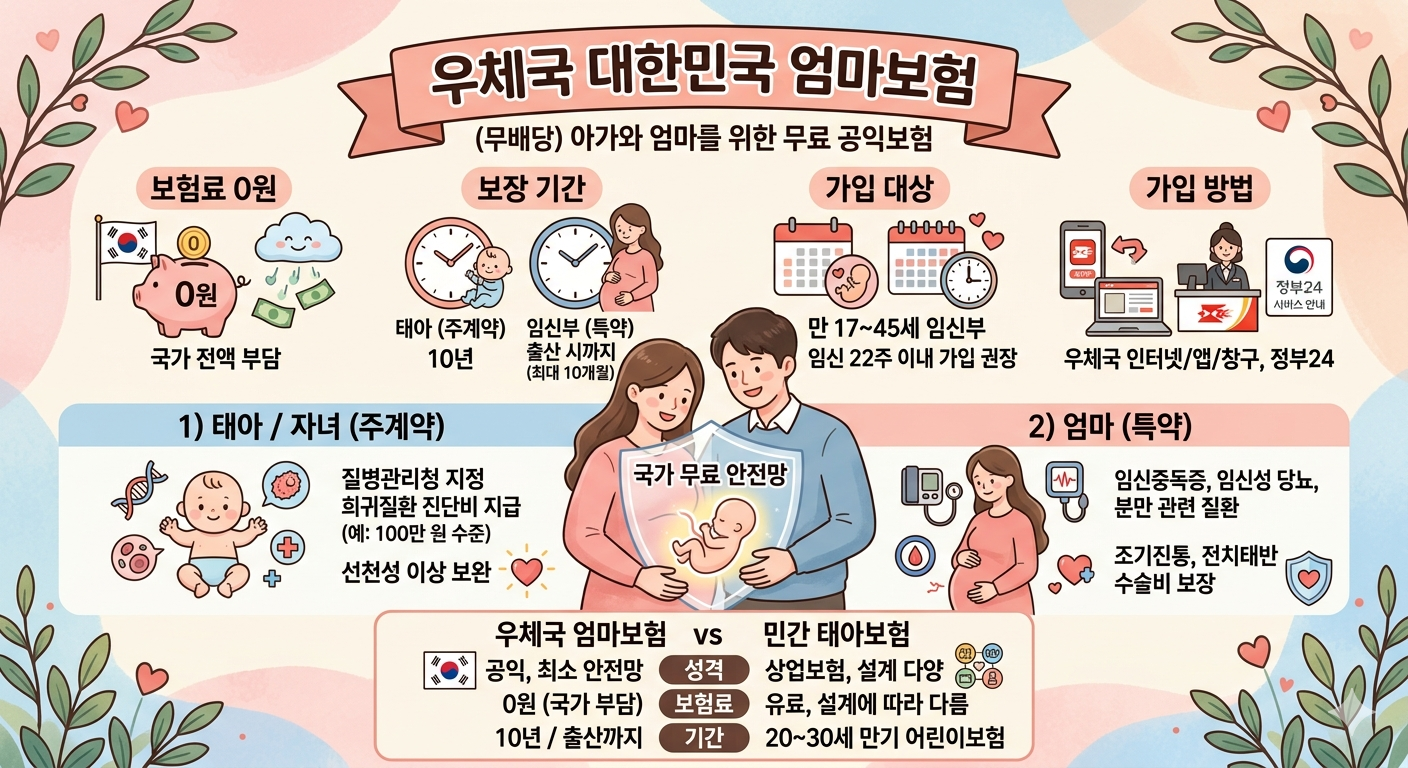 “아가와 엄마를 위한 무료 공익보험(우체국 대한민국 엄마보험)”