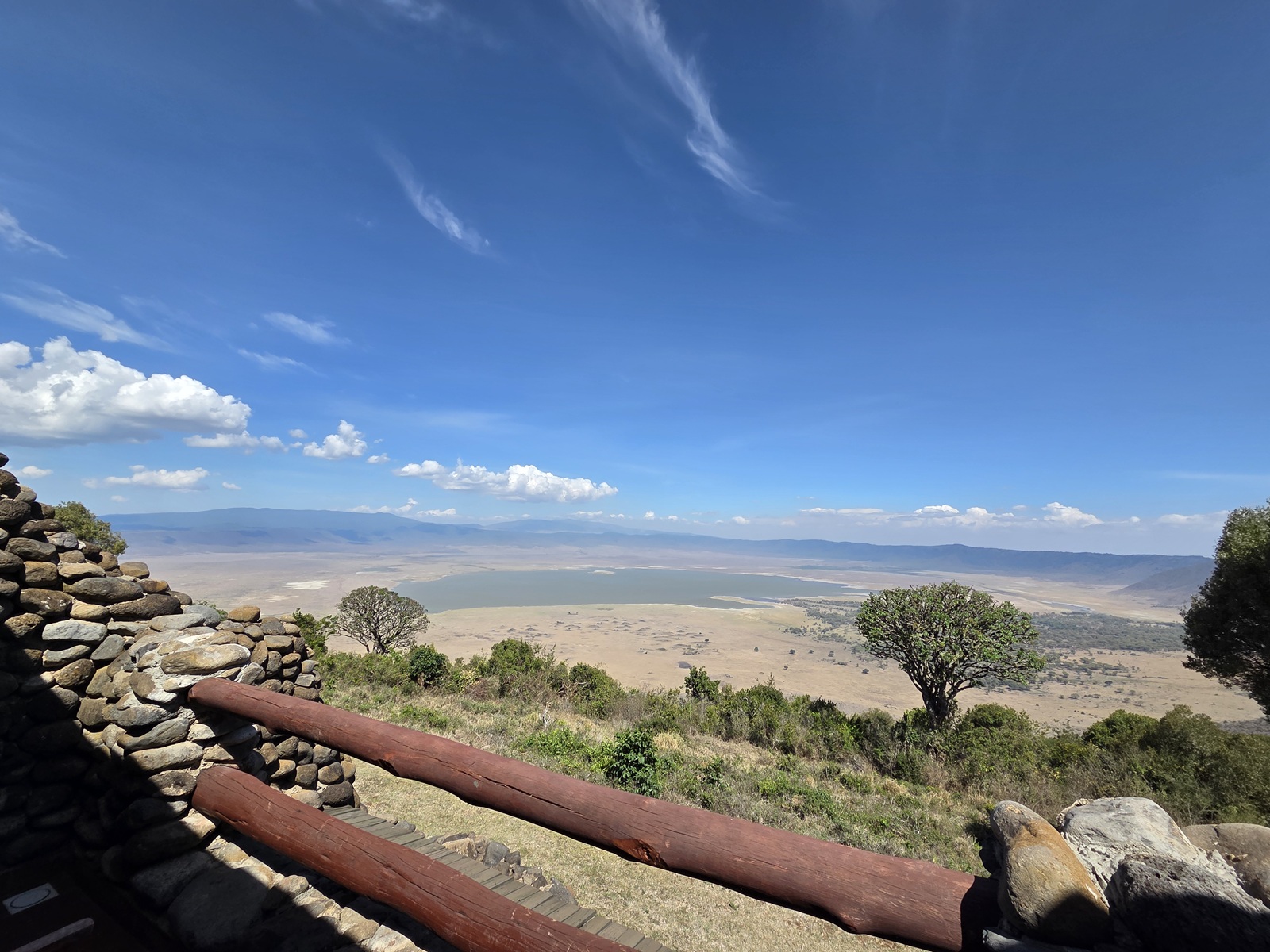 눈앞에 펼쳐진 풍경은 정말 “장관”이라는 말밖에 안 나왔어요. 거대한 원형 분화구 안쪽으로 초원, 숲, 호수가 어우러져 있고, 그 안을 조금씩 움직이는 동물들의 점 같은 실루엣이 보였어요. 사진으로 많이 보던 풍경이었는데, 실제로 보니까 스케일이 전혀 다르더라고요. “아, 내일은 저 아래로 내려가서 게임드라이브를 하는 거구나” 생각하니까 갑자기 가슴이 두근두근해졌어요.
