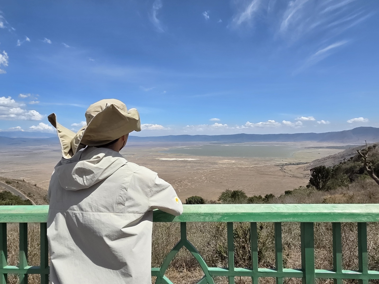 눈앞에 펼쳐진 풍경은 정말 “장관”이라는 말밖에 안 나왔어요. 거대한 원형 분화구 안쪽으로 초원, 숲, 호수가 어우러져 있고, 그 안을 조금씩 움직이는 동물들의 점 같은 실루엣이 보였어요. 사진으로 많이 보던 풍경이었는데, 실제로 보니까 스케일이 전혀 다르더라고요. “아, 내일은 저 아래로 내려가서 게임드라이브를 하는 거구나” 생각하니까 갑자기 가슴이 두근두근해졌어요.