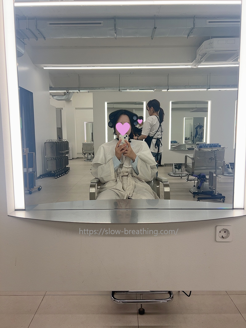 헤어는 촬영용으로 볼륨 넣고 S컬 웨이브로 부탁했는데 딱 원하는 느낌으로 완성됐어요. 머리하고 드레스 환복 전에 화장실 꼭 다녀오세요! 드레스 입고 나면 거의 불가능하거든요.