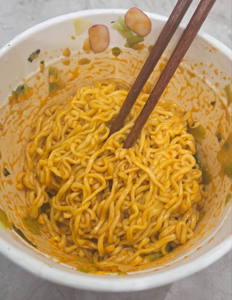 홍라면은 은근히 감칠맛이 오래 남아서 ‘매운데 또 먹고 싶다’는 기분이 듭니다.