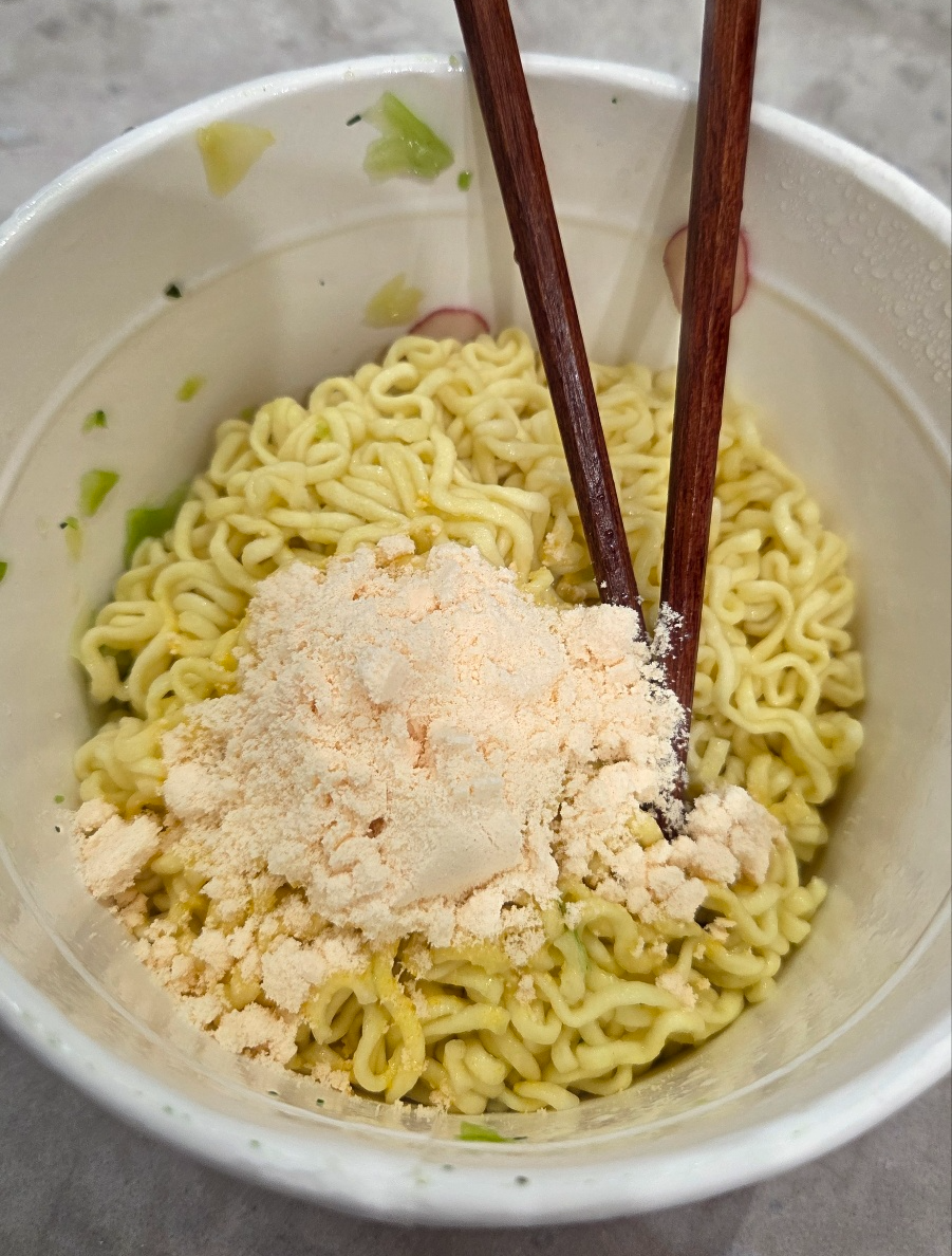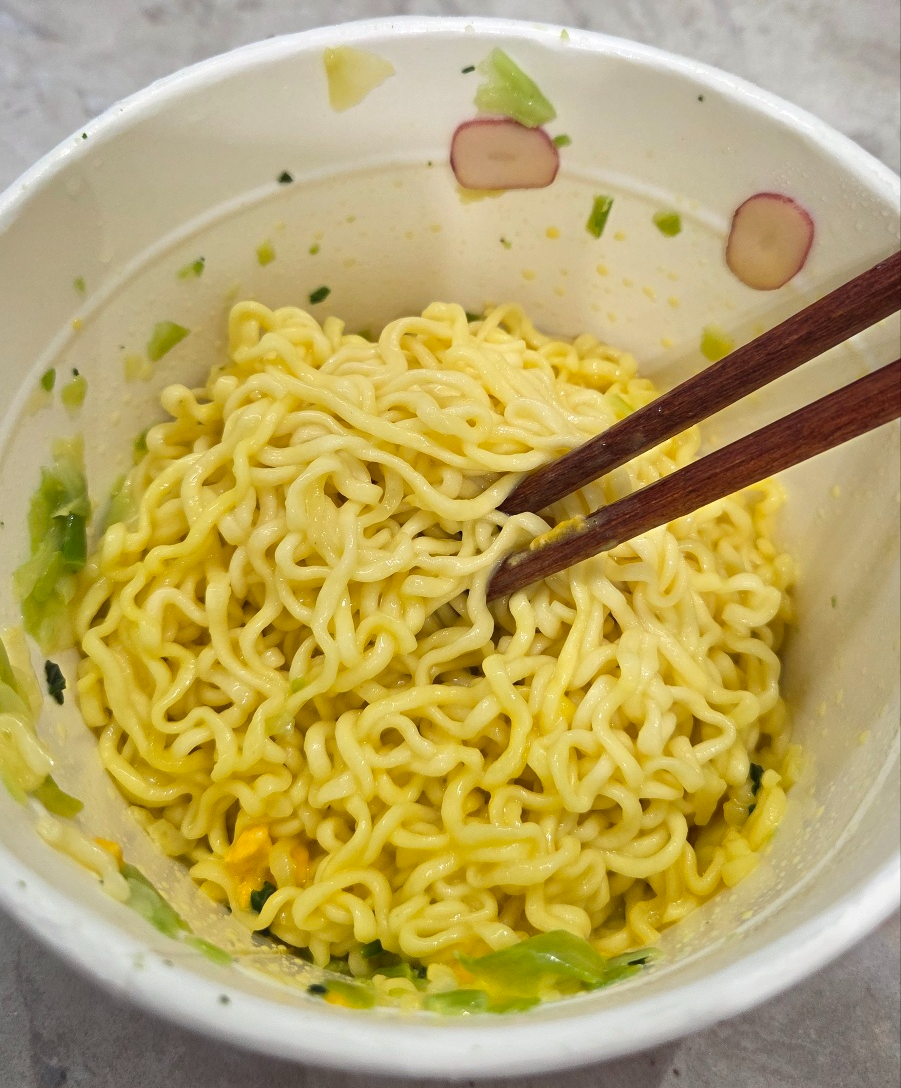 개인적으로는 95도 정도의 살짝 덜 끓은 물로 3분 정도만 익히면 면이 너무 퍼지지 않아 좋더라고요.