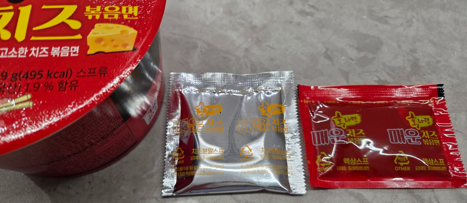 컵 하나 안에 면, 치즈, 매운 소스 — 딱 이 세 가지 구성이라