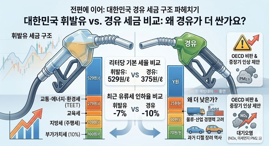 최종적으로는 “경유 세금 < 휘발유 세금”이라는 그림이 더 뚜렷하게 나옵니다.