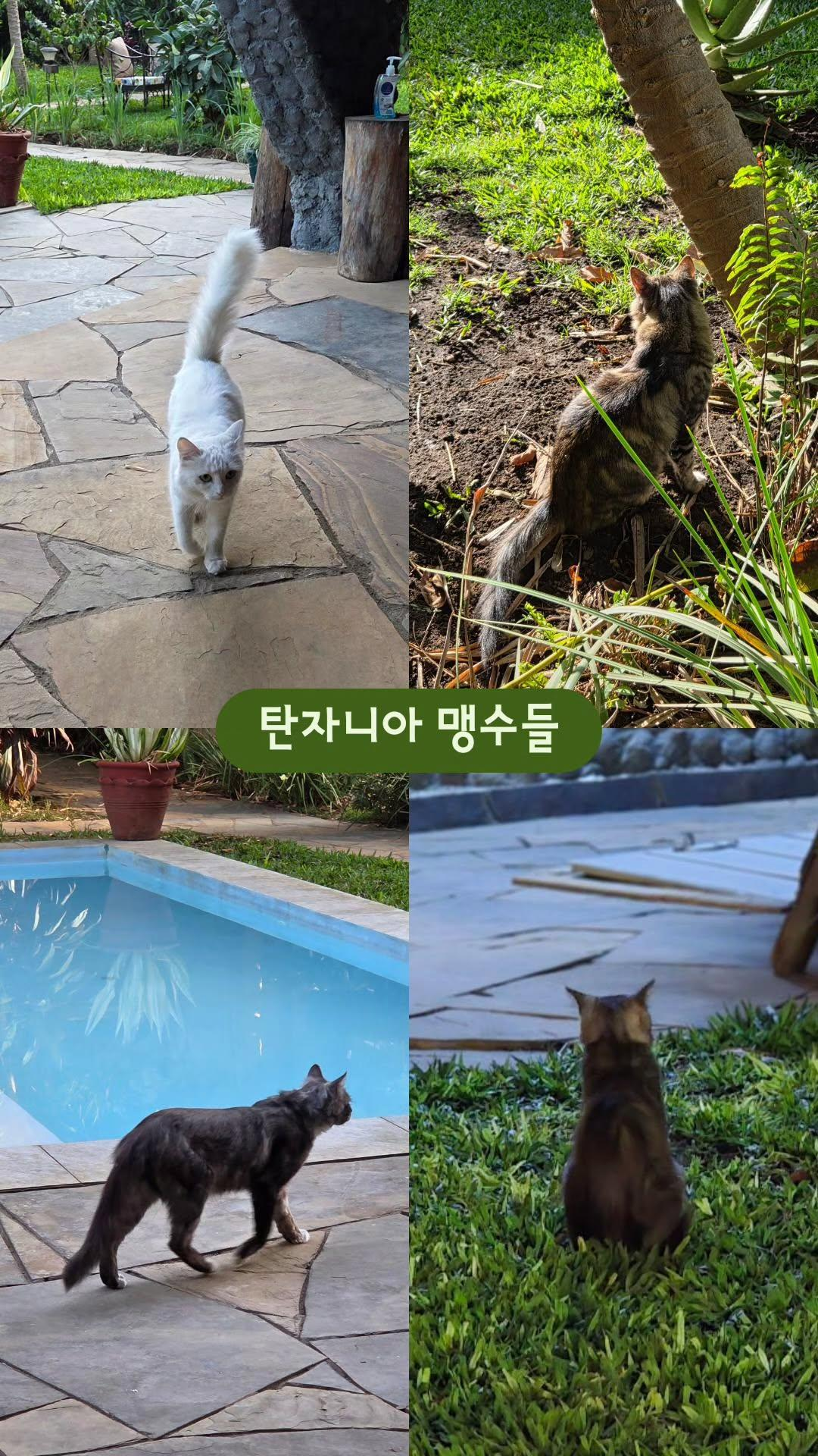 그래도 아루샤 첫날, 피곤한 몸을 푹 쉬게 해 줄 만큼은 충분히 괜찮았어요. 익숙한 환경은 아니었지만, 현지의 공기와 사람들의 미소 덕분에 따뜻한 밤을 보낼 수 있었던 숙소였습니다. 마지막은 하라다일 홈에서 만난 고양이 사진들로 마무리할게요.