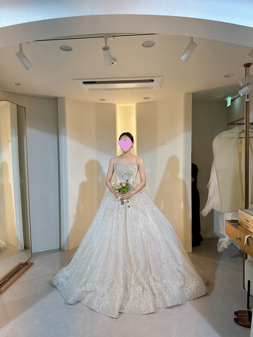 세 번째 드레스는 이 날의 최종 본식 드레스 후보 중 하나였고, 실제로 제가 선택한 드레스예요.